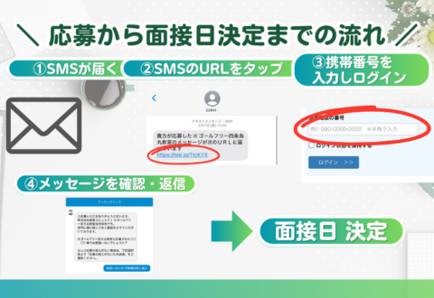「応募ボタン」は24h受付中!ショートメールか電話にて